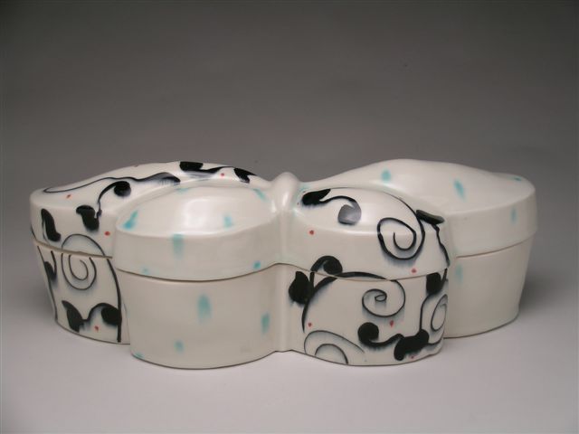 I don’t consider the work of the artists pictured above —and the next couple of groupings I hope to add in future posts— influences. It’s hard to define, but I differentiate between “favorites” and “influences”. The pictured works are vessels, wall pieces and sculptures I enjoy, appreciate and just plain love (like I want them in my house, love) by artists I respect. Sometimes we like things specifically because they are different from what we make (do, or wear).