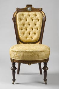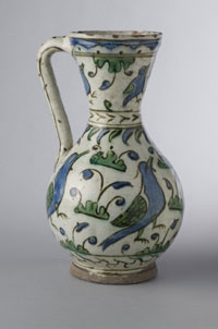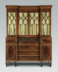 From top left, first row: Animals in Diamonds (Dutch/Delft tiles) c.1585 Netherlands; Chest over Drawers, Pennsylvania c.1792; Compote, c.1846 France for President Polk; Second row: Vase, Chicago Terra Cotta Works 19thc. Illinois; Bird at Trough, c.1850 Pennsylvania German; Candlestick, c.1761 Sèvres, France; Coffeepot, c. 1800 Pennsylvania German; Coffeepot, c.1899 Rhode Island; Third row: Cylinder Desk and Bookcase, c.1800 PA; Document Box (painted tin), c.1830 PA; Dressing Table, c.1715 PA; Fourth row: Footstool, c. 1730 PA; Bird Tree, c.1810 Pennsylvania German; Still Life by Giorgio Morandi, 1946; Fifth row: Interior of a Café by Santiago Rusiñol, 1892; Jug, 17th c. Iznik, Turkey; Lilac Blossoms by Christiaen van Pol, c.1800; Sixth row: Orchids in a Jungle by Martin Johnson Heade, c.1870s; Pair of Candelabra designed by Louis-Constant Sévin, c.1862 France; Tabouret (Persian), early 13th c. Iran; Seventh row: Pillow, Song Dynasty (960-1127) China; Side Chair, c.1870 PA; Spice Box (Painted maple), c. 1870 PA; Two Hares in Moonlight by Cho Tai Eok, Chosòn Dynasty 18th c. Korea; Vase on Brass Mount (glass), c. 1910 U.S.; Eighth row:Vase with Lid, c. 1768 Sèvres, France; Wardrobe designed by Sir Ambrose Heal, c. 1910 England; Last row: Centerpiece (Surtout), Strasbourg faience factory, c.1729 France; Sofa (one of a pair) c.1725 England; Pillow, Yuan Dynasty (1271-1368) China.