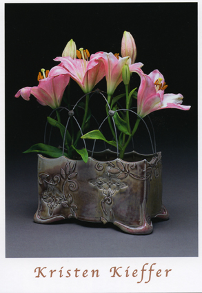 *If you would like a postcard, I would like for you to have one. My most current 2008 Covered jar postcard and the 2005 Flower Brick postcard are still available. (The former because it’s still new and the latter because a printing error left me with 2500!) Simply drop me an email with “Postcard” in the subject line, your mailing address in the body, and specify which card: 2008, 2005 or both. I would love for you to have a pot, but this is a nice precursor, and something you can actually hold in the meantime.