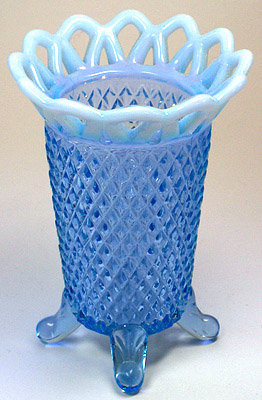 c1920 Imperial Katy Blue Opalescent Laced-edge vase Published on April 17, 2011 at 262 × 400 in “Veys,” “Veyz,” “Vahz” « Previous Next »