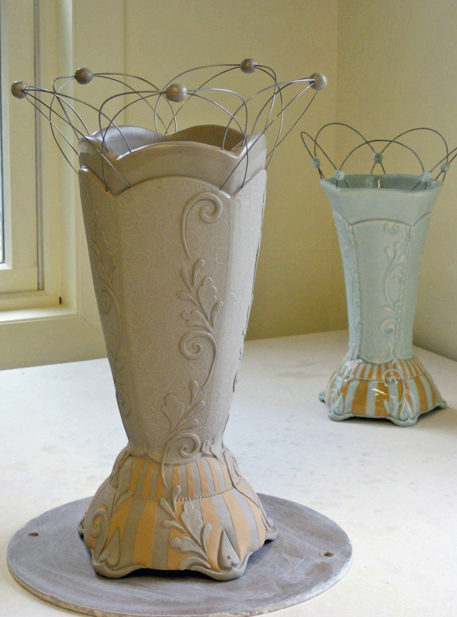 Wire lattice vases Published on April 17, 2011 at 457 × 617 in “Veys,” “Veyz,” “Vahz” « Previous Next » Wire lattice vases, in-progress and prototype, by Kristen Kieffer.