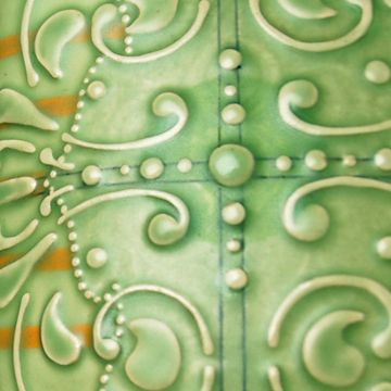 Pillow tile detail Green scroll w. tangerine Published on January 5, 2013 at 360 × 360 in Layered Layers « Previous Next »