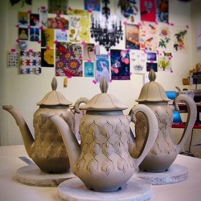 Kristen Kieffer teapots in progress Published on December 31, 2015 at 640 × 640 in Studio Cycles Pictorial 2015 « Previous Next »