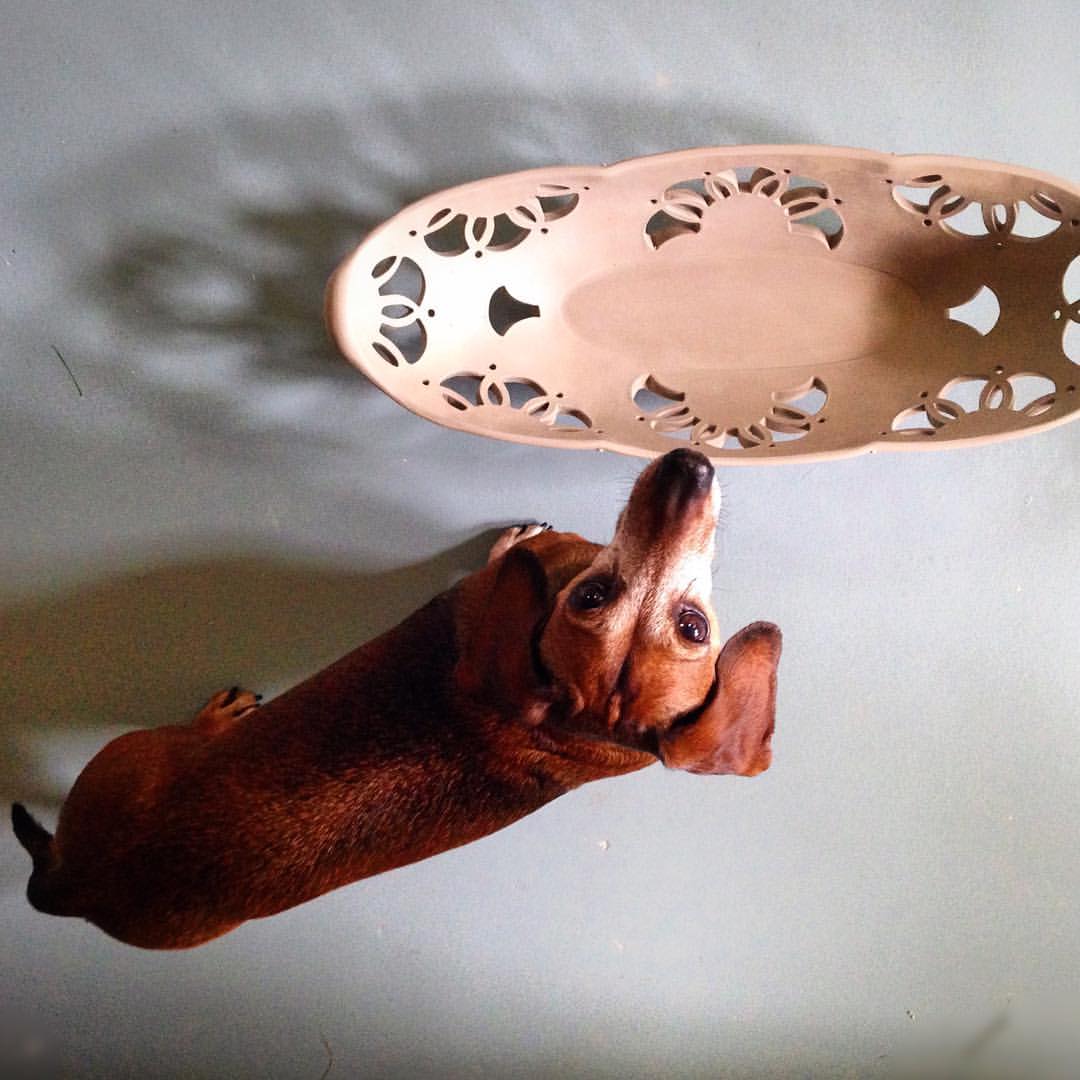 Pierced basket by Kristen Kieffer with Hannah doxie for scale Published on December 31, 2016 at 1080 × 1080 in Studio Cycles Pictorial 2016 « Previous Next »
