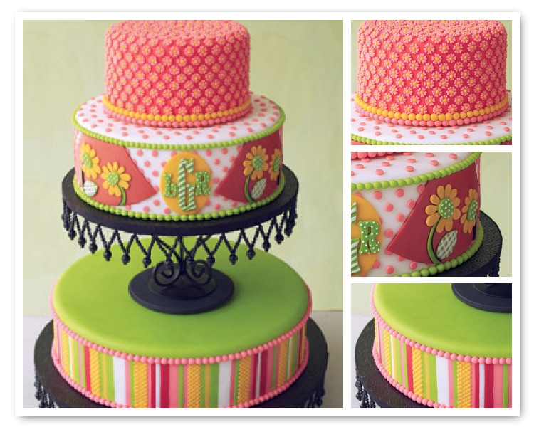 If you hover your cursor over the pics above, you can get most of the info below too. From top left: Vintage glass cake stands with cakes; Esther Coombs’ 3-tier Rose Cake Stand, EstherCoombs on Etsy; and Karl Lagerfeld for Chanel dress paired with wedding cakes, Trend de la Creme blog post; Second row: Blaue Blume cake stand by Tina Tsang; The Husband Catcher Cake, oil painting by Janet Hill; and Art Deco cake stencil wrapper from Fancy Flours; Third row: Silver cake stand;and Maren Kloppmann’s Ledge Platter; Fourth row: Whitney Smith’s Bird Cupcake Stand, WhitneySmith on Etsy; Lemon cake with blue icing and dots, Country Living photo shoot; and Iacolli & Mcalllister cake stands on Big Cartel; Fifth row: Kari Radasch’s cake stand with confetti cake, Redware on Etsy; Lazy Daisy skirts by Made With Love By Hannah (cake stands have skirts, and these are super cute!); and w2products Willow cake stand; Sixth row: Jeanette Zeis’ Lace cake plate, vesselsandwares on Etsy; 4 Layer Cake, oil painting by Paul Ferney; and antique three-tier cake stand; Seventh row: reproduction of 1930s-era glass cake stand; D’lovely cake stand, fergusonpottery on Etsy; and Elle cake stand by Clara French; Last row: cake stand from The Tea Pot Shoppe; striped cake by The Yummy Cake Company; and Black Lace Cake Stand from the MoMA store.