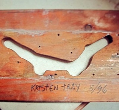 Out of the blue in 2014, John sent me this image of an extruder die he made for a tray design that coincided with my first month working with him, so he labeled it “Kristen tray.”
