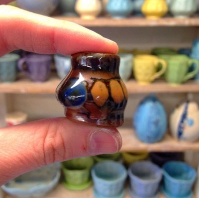 If I was having a bad day and took a break, I’d return to a mini thrown pot, hand-built cat, or smiley flower made by John. This is one of those delightful tokens, which he later glazed for me.