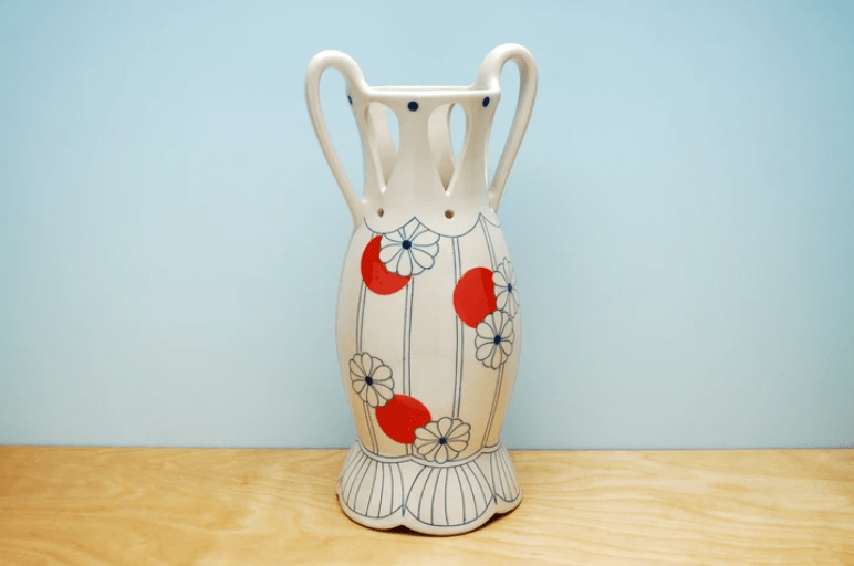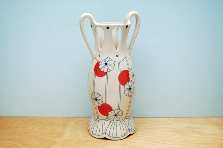 Pierced vase w. red polka dots