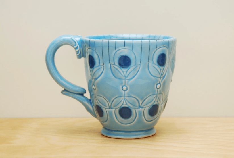 Stamped Deco mug w. Mod floral in Aqua and Navy Published on April 29, 2020 at 824 × 556 in Sold « Previous Next »
