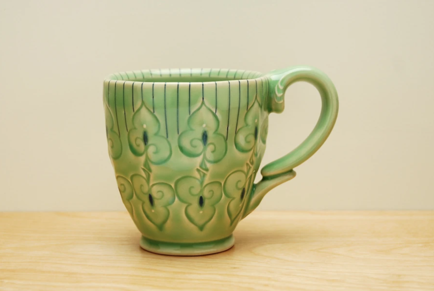 Stamped mug w. pinstripes in Spring Green gloss Published on May 10, 2020 at 890 × 598 in Sold « Previous Next »