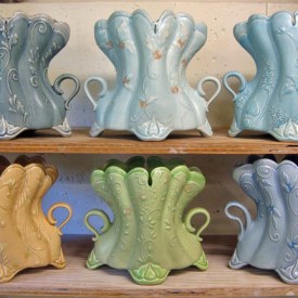 A close secondary function for the dots has been to add some joyfulness; polka dots are rarely somber. Though I do receive some comments by folks who favorably see ‘Disney,’ I think my pots can appear more serious than I actually am or intend. In some ways, I’m still the five-year-old tomboy who hated my freckles (my own personal polka dots), deciding one summer day that, with the aid of my grape-smelling marker, they would be much better purple. So, the dots are a way to include my influences of sweets, for example, as well as infuse connotations of informality and playfulness.
