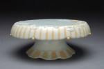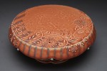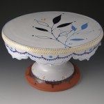 This summer, I finally got around to making a more substantial cake display form based on my drawings and metal-working influence.  I am humorously referring to it as a “cake throne”.  At some point, I hope to post a pic after the glaze fire, as well as make more. Pictured: Cake Throne detail at leatherhard