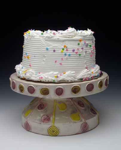 It seemed fun and appropriate to share some other cake stands (with and without cakes, functional and not) in this post, kind of a sideways follow-up of favorites to my Cake as Influence post.  I sometimes use the word “cake” as an adjective to mean “great,” “lucky” or “awesome”.  So, below is a range of very *cake* cake stands (and other peripherally related images) I found in my searches, yielding a range of handmade to manufactured, new to vintage and ceramic to, well, oil. Enjoy!